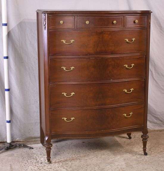 Walnut serpentine front 3 over 4 drawer chest; 14907-007