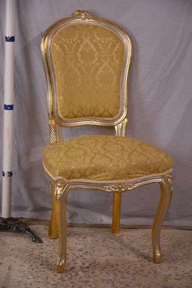 LOT 711 - French style side chair with carved gold and silver frame; 1152-131