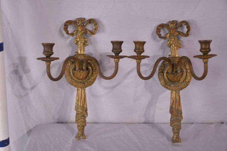 LOT 98 - Pair of bronze 2 candle wall sconces; 68-7318