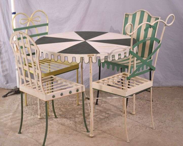 LOT 124 - Green and white metal 5 piece circus tent dining set; 3431-030