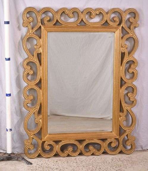 Large beveled mirror with ornate gold frame; 1044-146