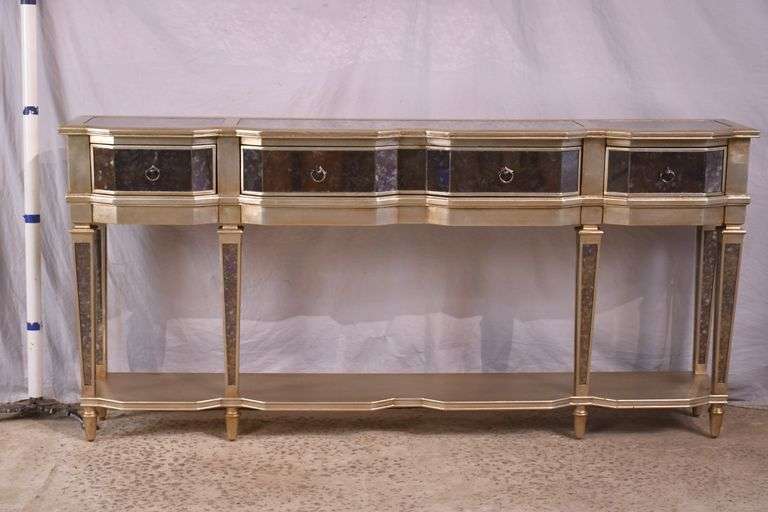 distress mirrored two-tier console table with silver trim; 16780-024