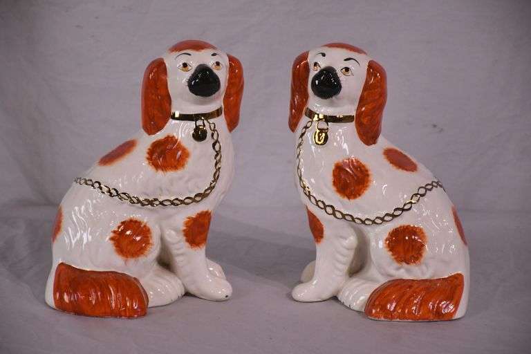 Pair of ceramic Staffordshire style dog statues; 14208-001