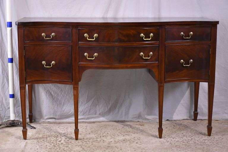 Crotch mahogany serpentine front sideboard with spade feet; 55-12356Z