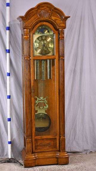 LOT 43 - Sligh grandfather clock with oak case; 55-12353Z