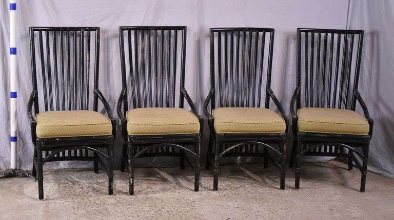 LOT 92 - Set of 4 black rattan spindle back chairs; 55-12477