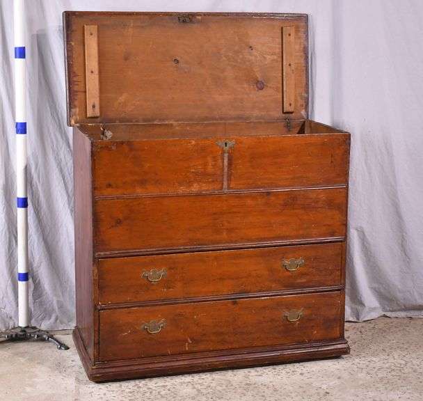 Early pine lift-top mule chest with 2 drawers; 55-12413
