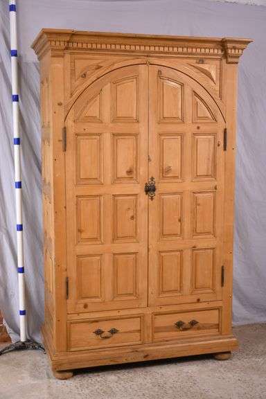 LOT 101 - Large pine armoire with raised panel doors and sides; 55-12458