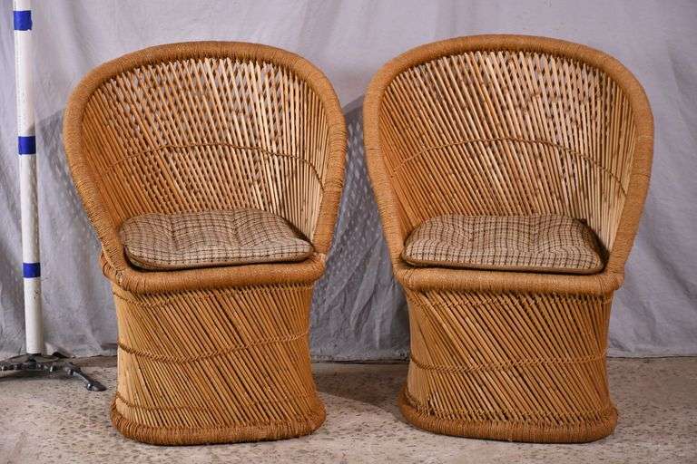 LOT 112 - Pair of rattan curve back chairs; 55-12504