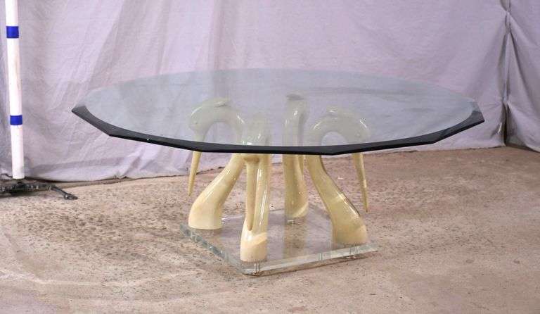 Large beveled glass top coffee table with bird head base; 55-12470
