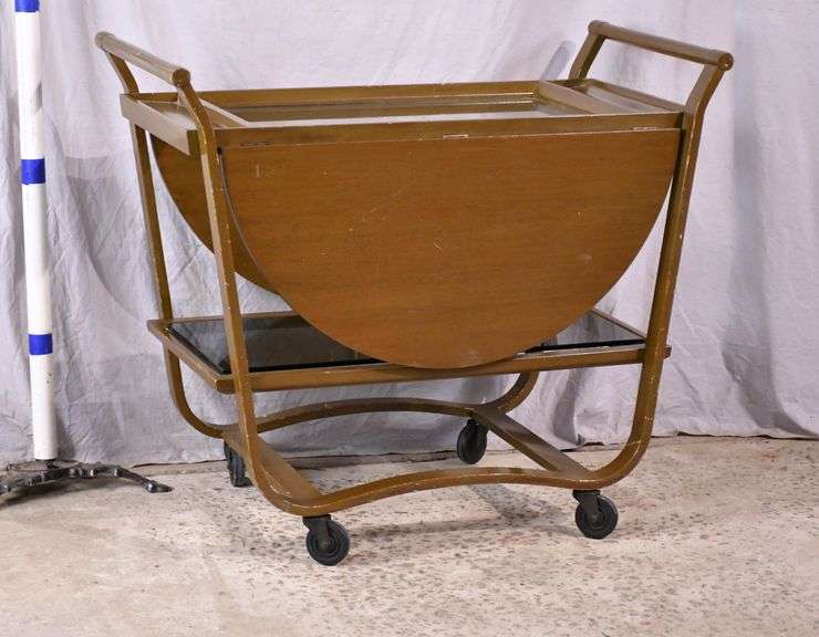 Drop-leaf two-tier serving cart with glass shelves; 55-12441