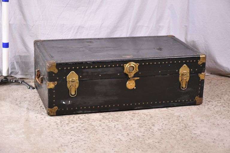 LOT 458 - The Rauchbach Trunk & Luggage Co. vintage black trunk with interior tray; 55-12445