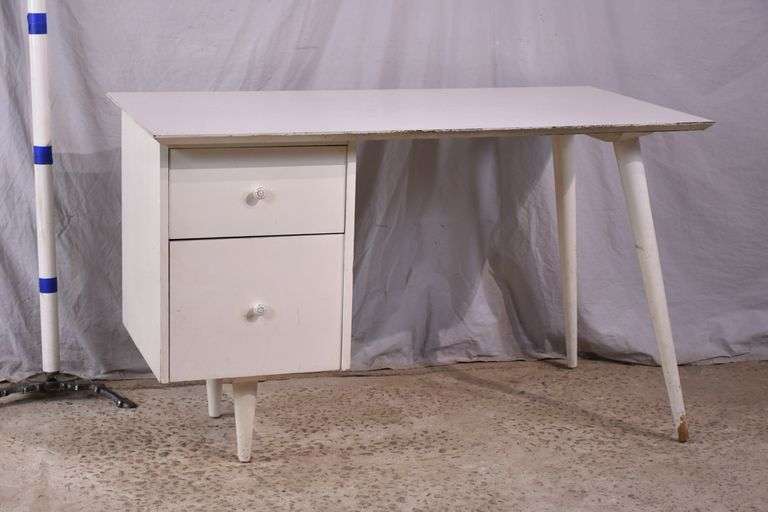 LOT 459 - White mid-century style desk with 2 drawers; 55-12509