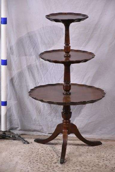 Mahogany three-tier dumbwaiter with 3 leg pedestal base; 16800-026