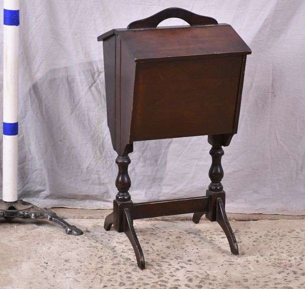 LOT 146 - Small double-sided lift-top sewing stand; 15467-004