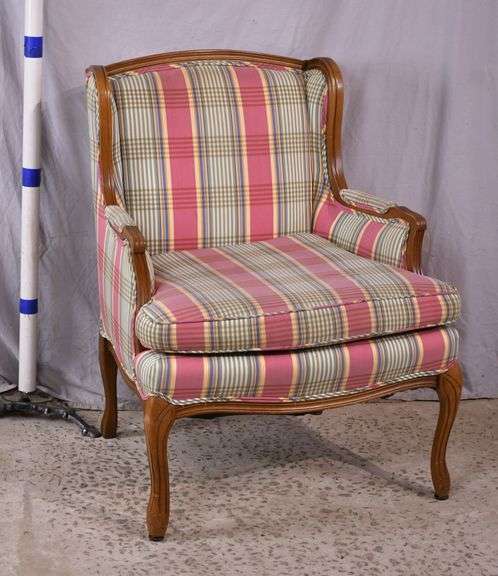 LOT 201 - French style wingback armchair with plaid fabric; 18305-041