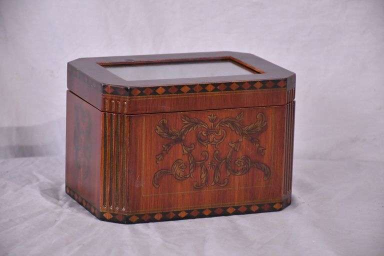 LOT 223 - Bombay Co. small decorated lift-top index file box with vintage postcards; 16721-103