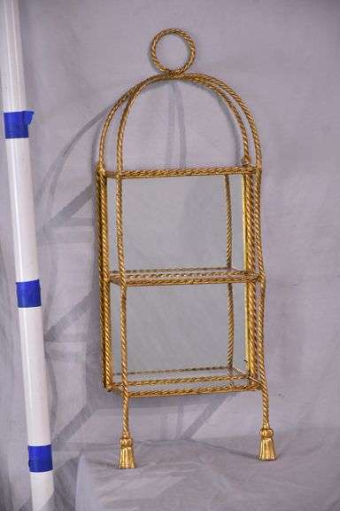 Gold metal tassel design three-tier wall shelf with mirrored back; 18305-040