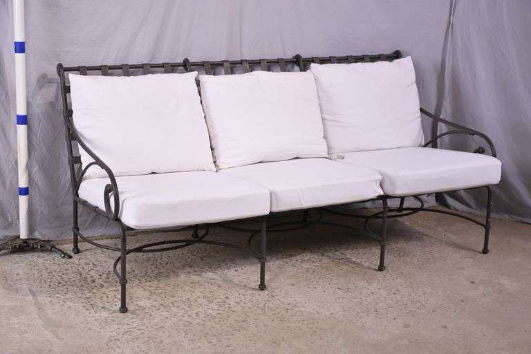 LOT 240 - Metal sofa with white cushions; 1116-827