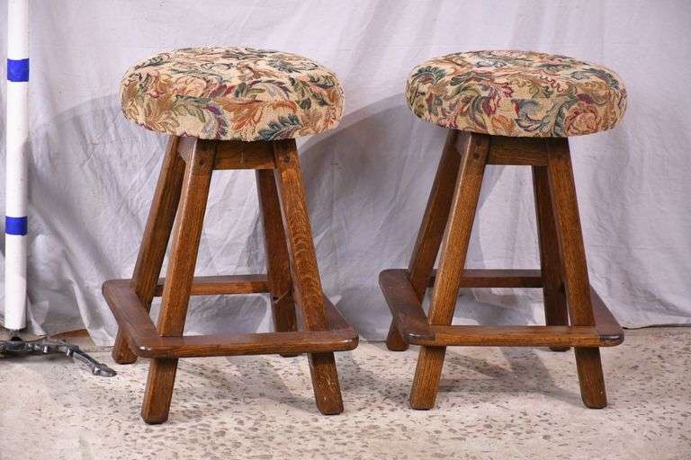 LOT 263 - Pair of oak barstools with swivel seats; 12622-002