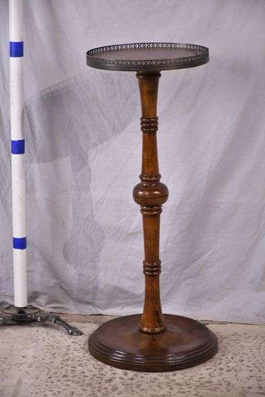 Round leather top plant stand with brass gallery; 15102-007