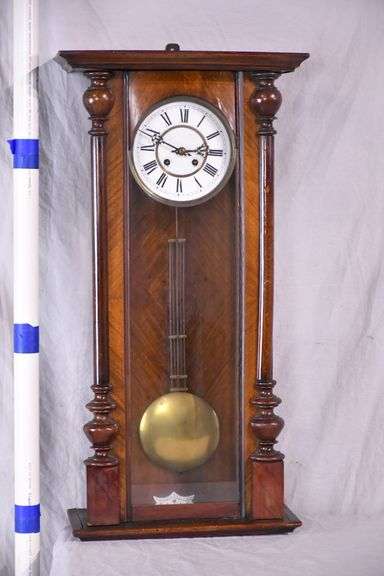 LOT 273 - Tall wall-mounted clock with mahogany case; 9485-124
