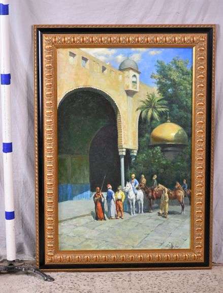 LOT 277 - Large framed Moroccan scene painting on canvas; 18031-243
