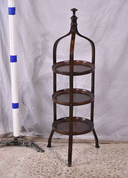 LOT 280 - Round mahogany three-tier muffin stand; 9463-002