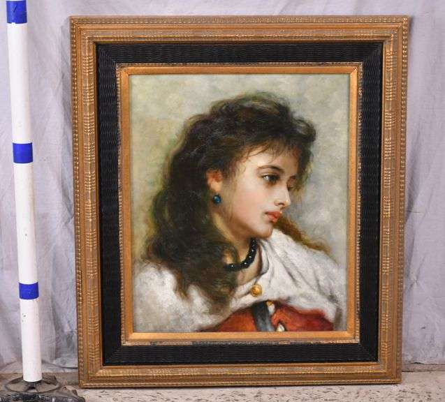 Large framed painting on canvas of a portrait of a woman; 18031-245