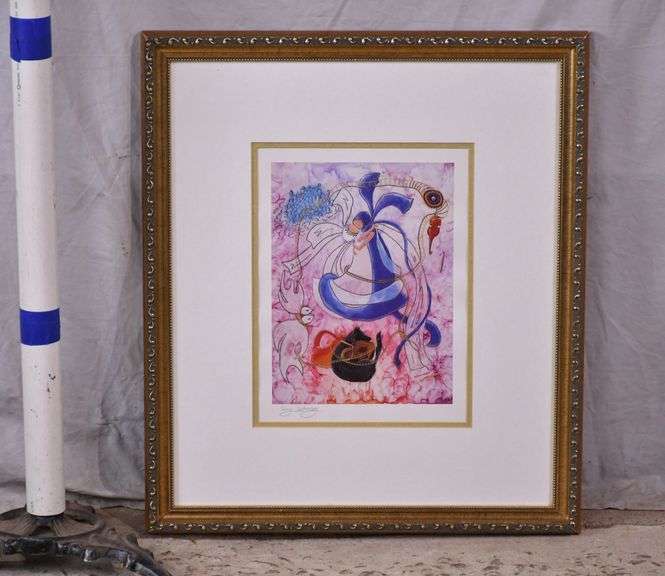 Signed framed mixed media print "Wolf Shall Dwell w/ the Lambs" by Rikey Rothenberg; 1152-163