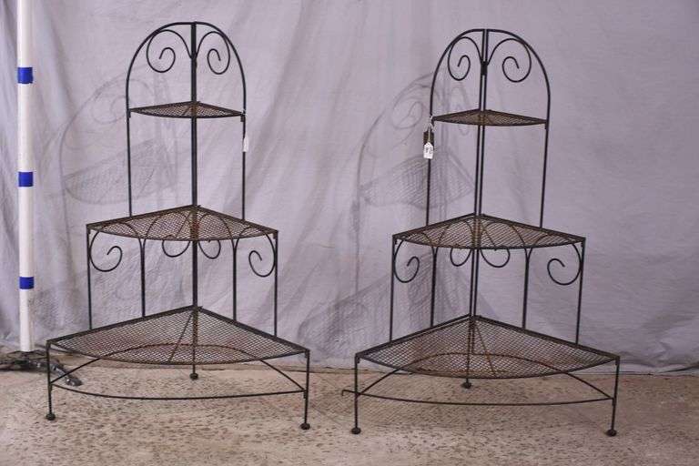 Pair of Jackson & Perkins iron 3 tier collapsible corner what-not stands; 1152-180