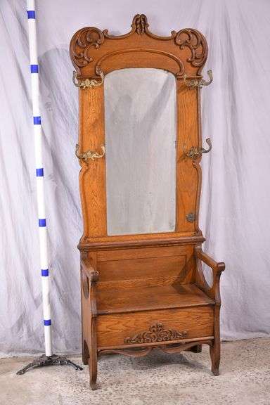 LOT 356 - Carved oak hall tree with beveled mirror; 37-2795