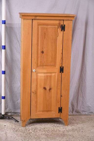 Small pine cabinet with raised panel door; 37-2792