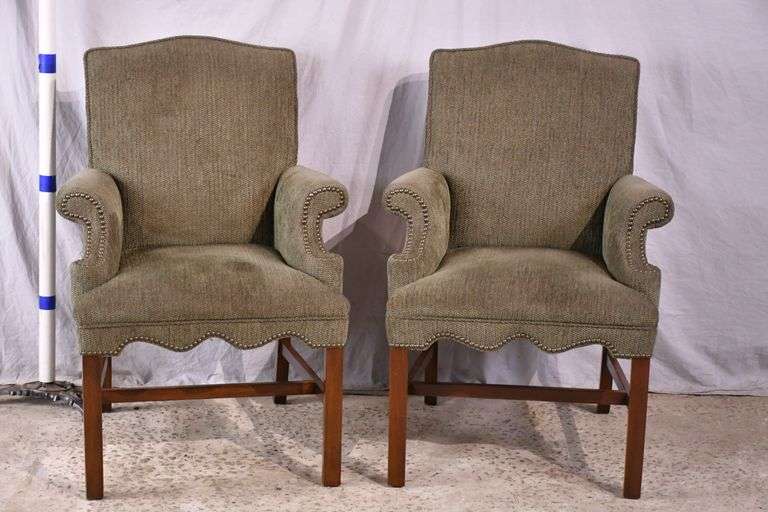 LOT 481 - Pair of moss green upholstered armchairs; 824-124