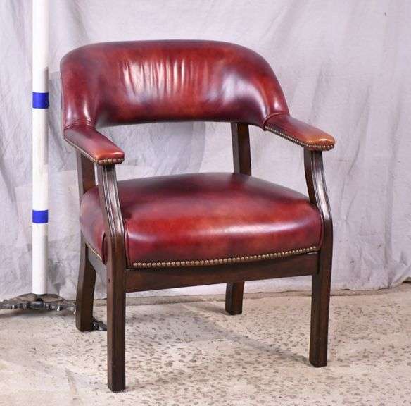 Leather open armchair with mahogany frame; 824-126