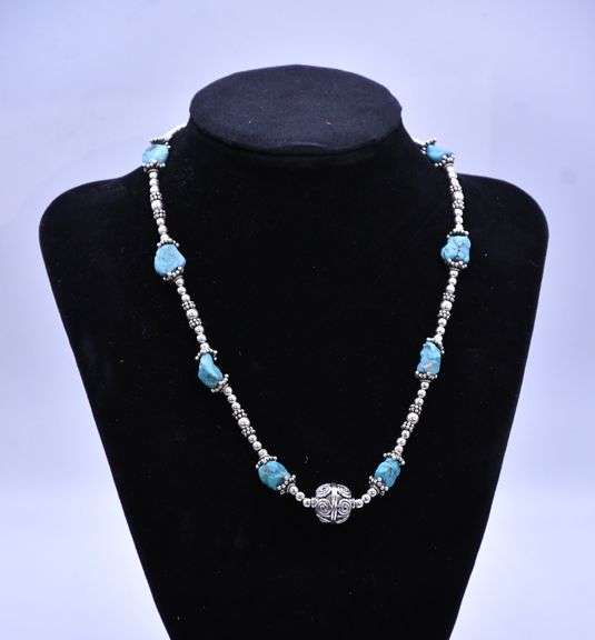 LOT 504 - Sterling silver and turquoise necklace; 155-1216