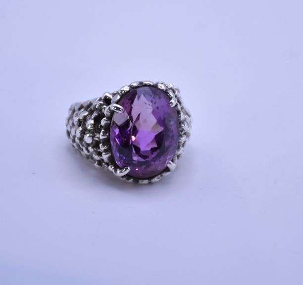 LOT 507 - Sterling silver and 15ct amethyst ring; 155-1219