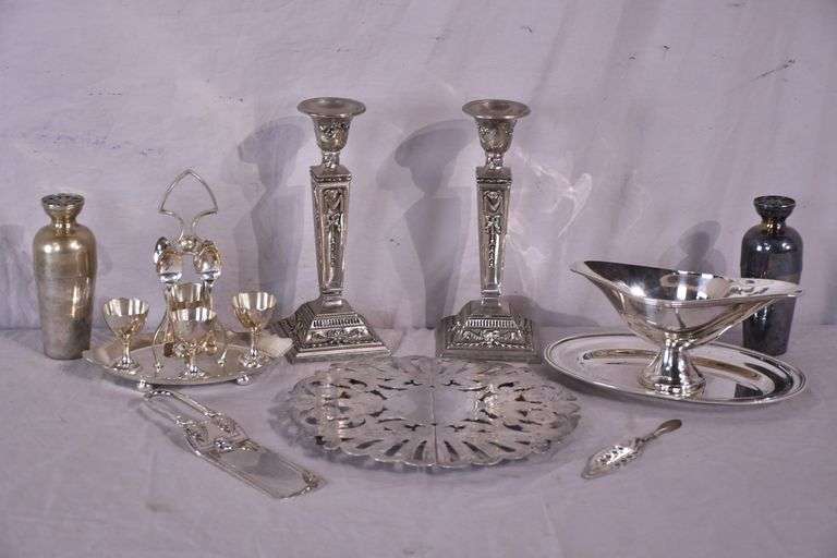 - egg server, pair of Napier cocktail mixers, Neiman Marcus pastry server, adjustable trivet, gravy boat, Absinthe spoon
