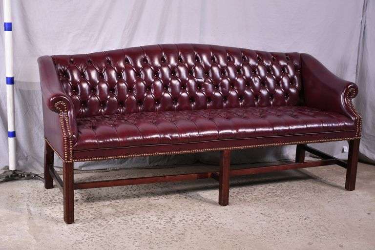 Burgundy tufted leather sofa; 1054-1450