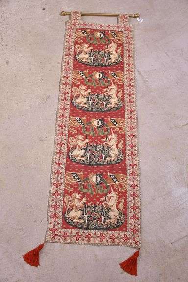 LOT 572 - Hanging Coat of Arms tapestry with gold hanging rod; 18031-233