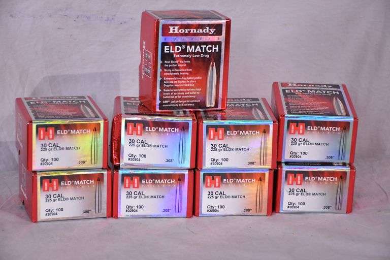 LOT 574 - Group of 9 boxes of Hornady 30 cal 225 grain ELD match bullets for reloading; 200-320