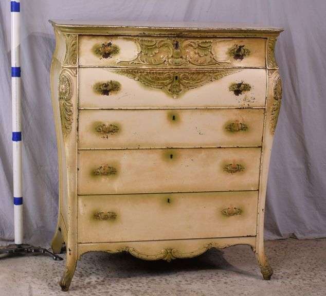 LOT 590 - Carved off-white 5 drawer chest; 55-12392