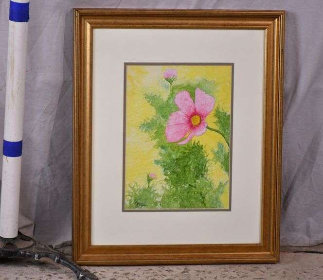 LOT 598 - Signed framed floral watercolor by Donald Gilmer; 1037-1279