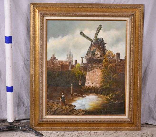 LOT 607 - Framed painting on canvas of a windmill; 336-4748