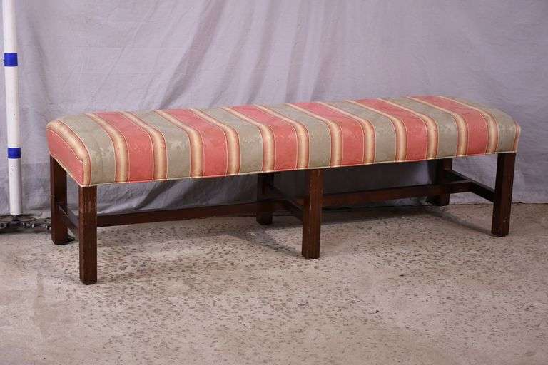 LOT 618 - Long 6-leg bench with stretcher base; 336-4731Z