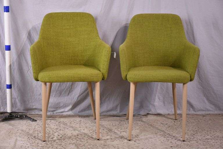 green upholstered modern style armchairs with metal legs; 336-4735Z